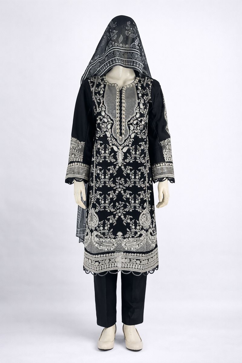 The look is completed with a beautifully coordinated dupatta that complements the embroidered details and adds a touch of elegance and flow. Ideal for casual wear, festive gatherings, and semi-formal occasions, this versatile ensemble blends traditional charm with modern styling.